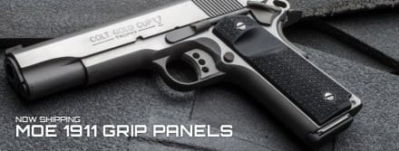 The instructors for Magpul’s training division wanted a 1911 grip with advanced features, improved control characteristics, and Magpul value. These grips were designed with their input and testing. Constructed of reinforced polymer, the grips have a unique diamond-shaped cross section to prevent twisting in the hand, an aggressive magazine release cut-out, aggressive texture for positive control, and are compatible with ambidextrous safeties. The grips are designed to fit full size framed 1911s with standard grip screw bushings. Available in Black, with additional colors and options to follow.