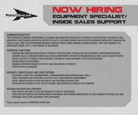 Prior military and/or law enforcement experience, and working knowledge of load carriage systems (LCS) and Personal Protective Equipment (PPE) preferred.