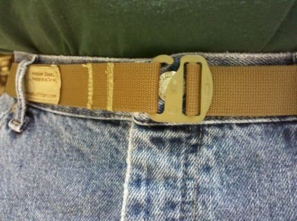 I’ve had one for two weeks and it’s a great, simple belt. Some of the best things are simply built. Oftentimes you will get a webbing belt with a new pair of hiking pants but generally the buckles leave much to be desired by either being too bulky or slipping. The Khyber belt has neither of these shortfalls. The buckle is fashioned from a Tan ITW Waterbury G-hook paired with 1″ coyote mil-spec webbing to fashion the belt. The running end of the belt is secured in place by a ladderloc and to be sure it won’t slip, the webbing is doubled back. It isn’t going anywhere.
