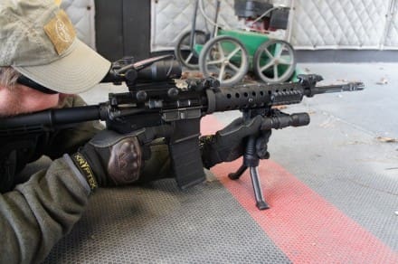 The Editor also practiced a couple of standing-to-prone transition drills, deploying a separate GPS.LE with light rail to stabilize the rifle while prone.