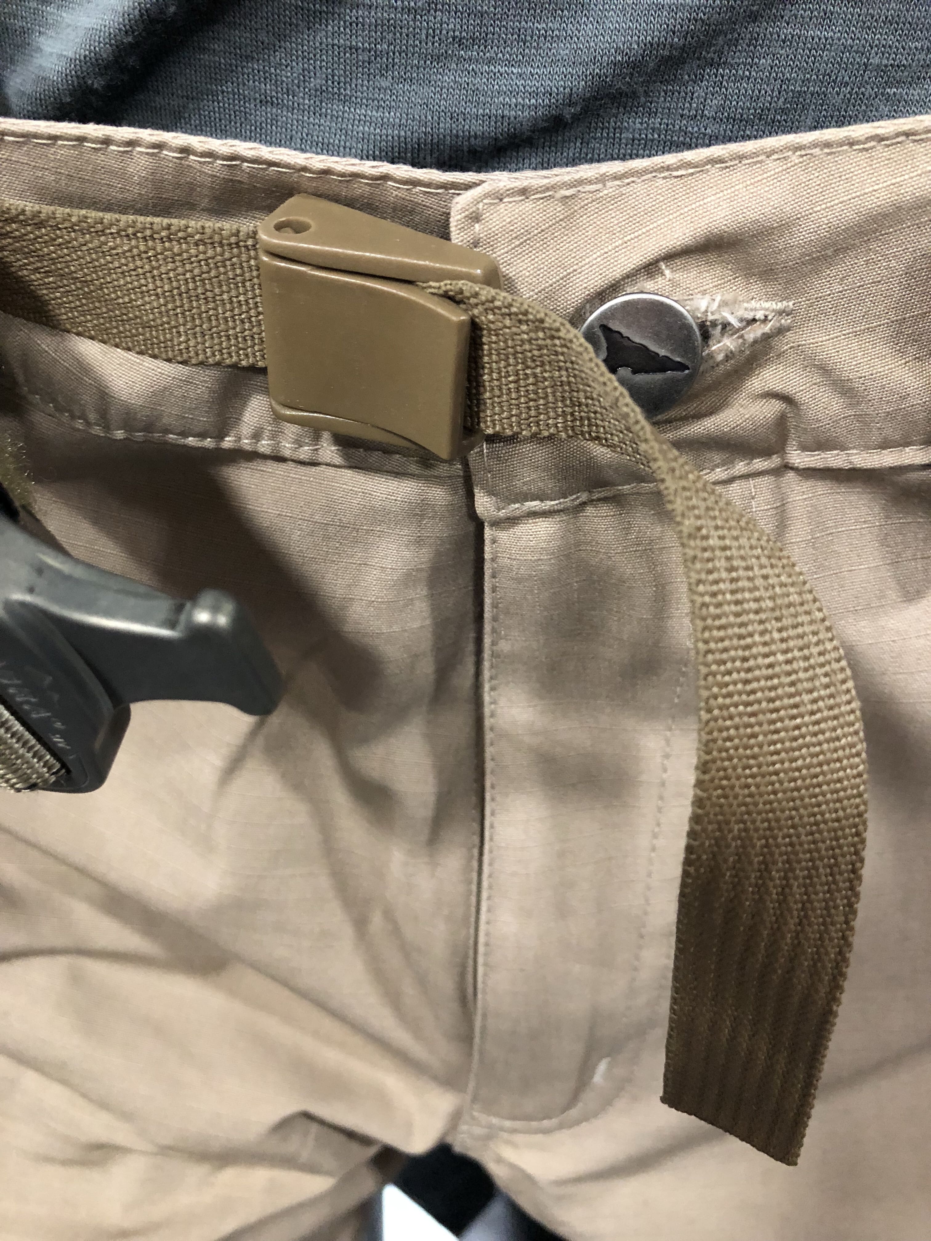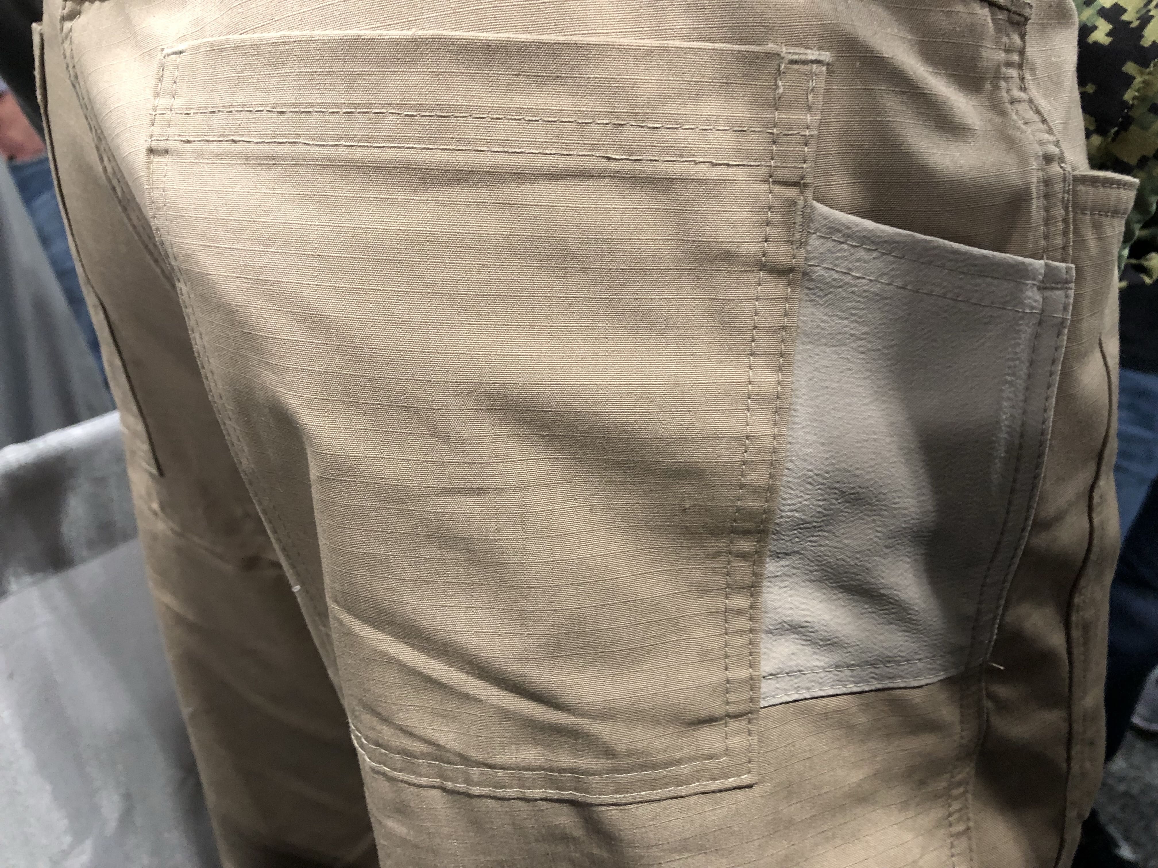 The belt loops on the Centurion Pants have been spaced to accommodate on-the-belt carry and off-hand draw as needed. The side pockets are made of 520 stretch fabric and will easily fit folding knives, common pistol magazines, and similarly sized items.