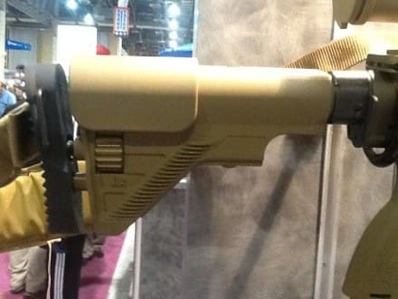 The stock is a bit different than the 417s in both style and function. The integral cheek riser is adjustable and will reciprocate when you charge the rifle. Additionally, the action is very smooth and it was simple to charge. Interestingly, while the safety is ambidextrous and the upper receiver integrates grooves on both sides to lock the charging handle in place, the weapons comes with two charging handles, a left and right to accommodate all shooters. The buttplate is also adjustable for length of pull.