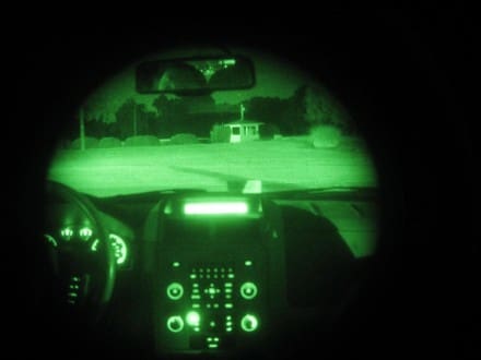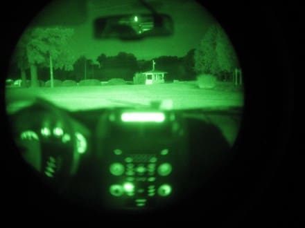 Dashboards or lighted panels are a huge problem for NVGs without using the Tarsier Eclipse. In picture 1 we focused on the gazebo (maybe 150-200 yards away), and you will notice how the panel becomes “washed out” from the NVGs. In picture 2, we kept the focus on the gazebo and started to engage the Tarsier Eclipse, while you cant read the numbers or letters on the buttons you can distinguish that there are actually buttons now.