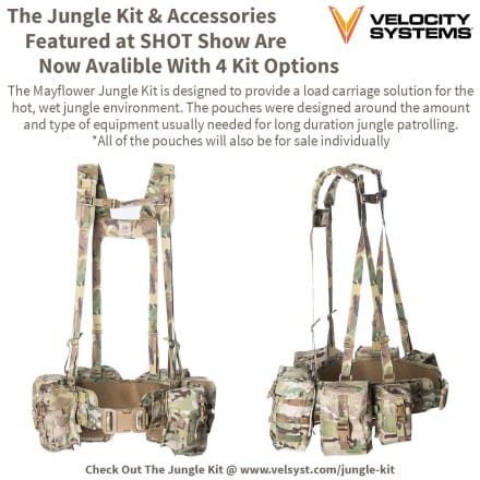 We’ve teased it a couple of times during development but it’s now available. The Mayflower Jungle Kit is designed to provide a load carriage solution for the hot, wet jungle environment. The pouches were designed around the amount and type of equipment usually needed for long duration jungle patrolling. All the pouches feature the Helium Whisper attachment system (zero water absorbency) and large diameter drain holes.
