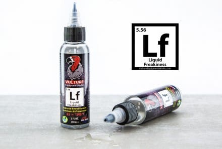 Liquid Freakiness is a extreme temperature -65 °f to 540 °f, fully synthetic lubricant specially formulated originally for our in-house knife & firearm production. After years using toxic products the owner decided a change was due and started extensive testing and real world applications on the product, which is now available commercially through dealers and direct on the Vulture website.