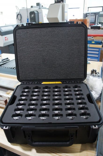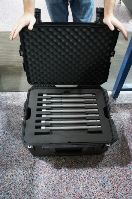 Barrels ready to ship out for coating in a ruggedized protective case. This helps protect them from shock during transit.