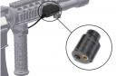 A Universal Control Grip is designed to control mounted lasers and flashlights directly from the foregrip. The grip’s three activation buttons are located right, middle, or left and accomplish accessory control by setting pre-selects for Flashlight, Laser, or Flashlight and Laser. The switches accommodate momentary or constant activation.