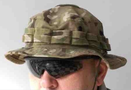 Canadian manufacturer Drop Zone Tactical has introduced a new Boonie Hat in order to satisfy user feedback on the shortcomings of many current designs. One of the key features of this new hat is a short brim in order to preserve peripheral vision. The camouflage band has also been reinvented by adding a second row. In order to modernize the drawstring, Drop Zone came up with an innovative solution that actually works. They mounted a Duraflexâ„¢ Muglock at the rear of the hat on one of the camo bands and have routed the drawstring through the Muglock. To adjust the drawstring, just pull the drawstring to the rear. As it is secured with a simple overhand knot it is easy to remove when not needed. Additionally, there is a pocket on the interior of the crown to stow small items. Finally, velcro patches have been added to the top and rear of the crown for IFF purposes. Ventilation is via mil-spec, black oxide, screened vents.