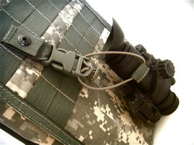 This system can also be upgraded with an improved dummy cord, snapping a female side release buckle onto a PALS loop to secure the NOD while stored.
