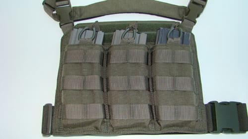 Made in the USA, the Go Time Triple mag accommodates three .223/5.56 type mags in a low profile carrier. Based on their popular Go Time Active Shooter Chest Rig platform, the magazines are secured with bungee pull tabs and each pouch features three rows of PALS webbing.