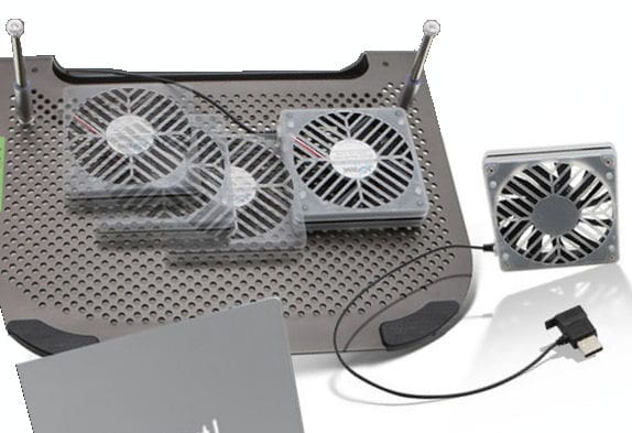 The USB powered fan can be moved around the base of the stand via a series of pins and holes allowing you to configure your cooling fan under the hottest spot on your laptop. For more information visit cRadia.