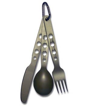 While most products being shown at OR won’t be available until January 2010 at the earliest, there are a variety of products you can get now. One example is the Alpha utensil set from Sea to Summit. A more economical alternative to titanium flatware, the Knife, Fork and Spoon set is made from hard anodized 7075-T6 aircraft aluminum alloy in a smooth matte finish and comes with a mini carabiner to hold it all together. The individual utensils have hexagonal holes cut out of the handle to reduce weight which provide three different size hex wrenches (3 mm, 4 mm & 5 mm). Available from Sea to Summit.