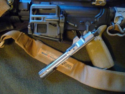 In addition to the transition to a one piece carrier, LWRCI has introduced a few other upgrades in the not so distant past. First off, instead of using a phosphate or a standard hard nickel finish on the carriers, LWRCI is now applying a Nickel Boron treatment. This treatment is of benefit to the end user in a couple of different areas. For starters, the Nickel Boron has improved lubricity over other standard finishes and has a noticeably slicker feel to the surface. Secondly, the Nickel Boron allows for easier cleaning of the carrier. Along with the Nickel Boron, LWRCI has also incorporated an Over the Beach modification in the form of longitudinal cuts in the pad found on the tail of their carriers. This allows quicker draining of water from within the upper receiver when the weapon has been submerged. The OTB modification actually allows the LWRCI to be fired once the weapon has broken the plane of the water.