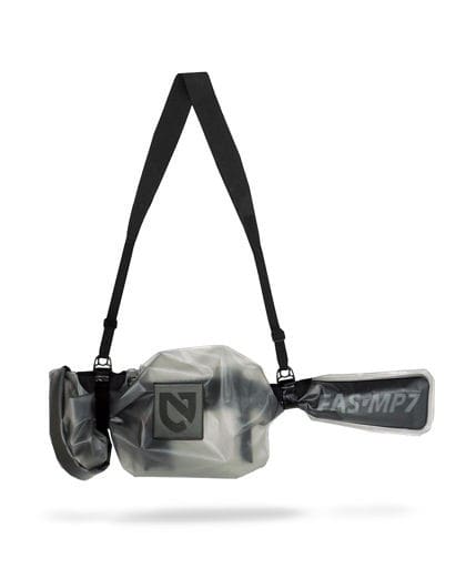The FAS Bag was designed to accommodate a suppressor equipped weapon and has heat resistant panels at the suppressor and ejection port. Additionally, the bag comes with a no-slip Hypalon shoulder strap. The shoulder strap is also used to tighten the bag around the weapon in order to secure excess material. A newly released version features a clear window for an ATPIAL equipped weapon. NEMO suggests that users practice extensively with the weapon in order to gain confidence with it before placing it into action. The weapon remains dry via a roll top closure that is secured with a side-release buckle.