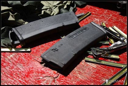 In addition to the cosmetic changes, Magpul also integrated the large, single-side MagLevel window found on the PMAG. This is the latest version of the MagLevel so the stainless steel magazine spring is now coated with mil-spec black oxide (MIL-DTL-13924D) and the indicator coil painted with a high visibility orange color. Additionally, numerical indicators have been added to the body to identify 5, 15, and 25 loaded rounds.