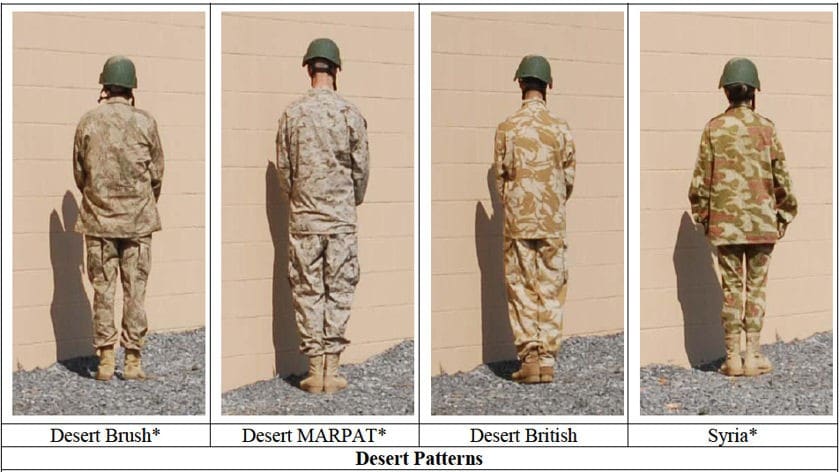 Unless you’ve been living under a rock, or failing to read Soldier Systems Daily, you know that in response to Congressional calls for a new camo pattern for operations in Afghanistan, the Army announced that they would test two patterns in October. The Army Times obtained a Natick test report for a camouflage study conducted from 2007 – 2009 of 18 different patterns. This report has now been released by the Army to the press and Soldier Systems Daily has extracted some of the major points from this test report. This is the first in a series of reports that attempt to make some sense of the report and cut through much of the conjecture and hyperbole found on the internet.