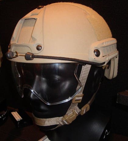 Speaking of Ops-Core, they debuted several new products available in early 2010. This eye shield was actually developed a couple of years ago but placed on hold while they refined the FAST technology for a military customer. The lens slides up and down on a track located inside the shell. It will replace the front brow pad inside the helmet as a unit and is ready to go awaiting production of the actual clear shield which will be manufactured by Oakley.