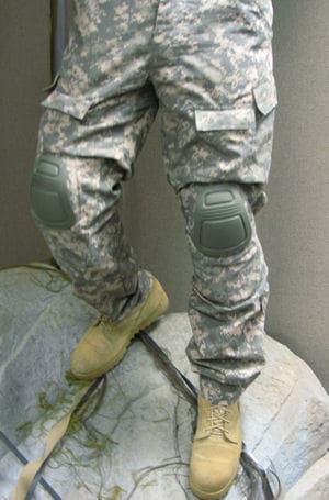 Massif Mountain Gear and Crye Precision collaborated on the next step, which resulted in the Massif Army Combat Pant Version 4.0A, which employed various weights of Defender M fabric and Defender M stretch fabric to make the seat and crotch more durable. At the same time, Crye Precision’s adjustable-height, integrated hard-shell knee pad design greatly improved the durability of the knee, providing greater protection to the Soldier. This feature in particular has been the most important solution in the project. External knee pads require constant adjustment and lightweight pads slipped into the knee pad slot of the trouser result in extra abrasion and worn knees.