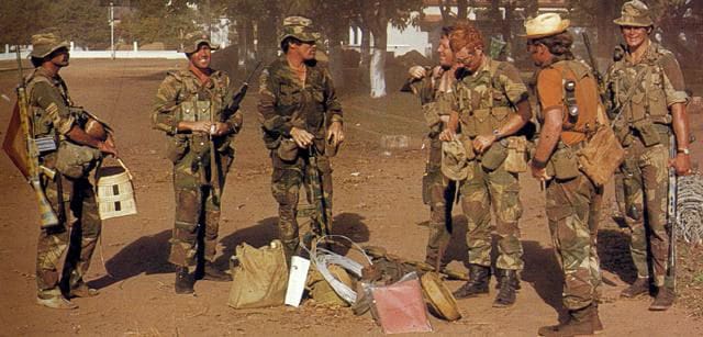 The first image depicts Rhodesian Soldiers in the mid-1970s with painted FN FALs and the second is a picture of the Australian F88A3 rifle based on the AUG. The finish of the F88A3 in a khaki color used in the Australian Disruptive Pattern Camouflage Uniform and is manufactured by Thales at the Lithgow Small Arms Factory. It is an interim solution until the A4 version has completed development.