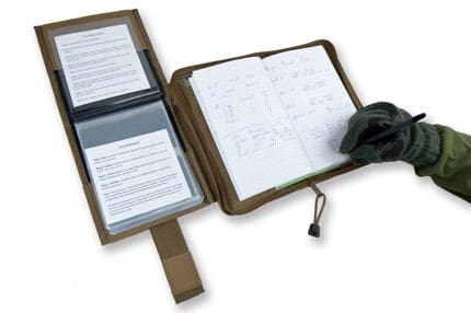 CP Gear has developed a new Field Message Pad holder designed to accept your checklists and notebook and organize them so that you can use them together. That’s right, one setup and you can reference your SOPs and write everything out from one cover. It has a 20 page checklist protector on the exterior (empty checklist sleeve is included), and a zippered notebook cover (notebook not included) sized to fit the green ‘Federal Supply Service Book, Memorandum’ – NSN 7530-00-222-3521 used by so many US personnel. The notebook and checklist book can be accessed independently from one another or at the same time. With this, there is no need to rely on the heavy and bulky ‘Flight Crew Checklist’ used by many for SOP lists like 9 Line Medevac, IED Reports, and so forth.