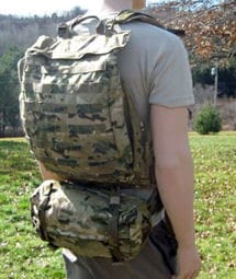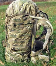 The Enhanced Modular Integrated Loadcarrying Equipment (EMILE) pack from Excalibur Products Group is an internal frame military pack which relies on dual aluminum internal stays and features thermomoulded lumbar pad, back pad, waist belt and shoulder straps.