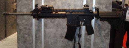 H&K employees manning the booth stated that they had just received the samples on Friday and that they were not yet completely familiar with them. The weapons were assembled at Daniel Defense but bear the proof marks of HK’s assembly plant co-located with Wilcox Industries in New Hampshire.