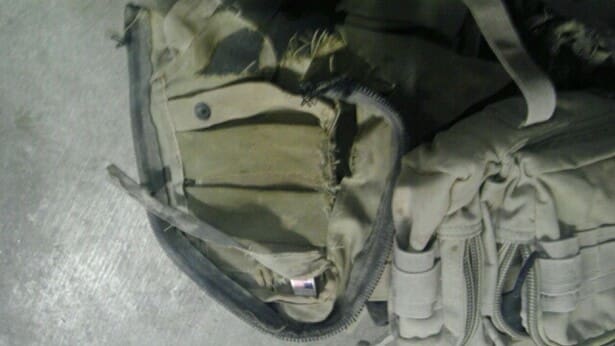 These are pictures of what remained of the first operational individual EOD kit (before it was formalized and named the Lion kit) after the blast that took David’s legs.