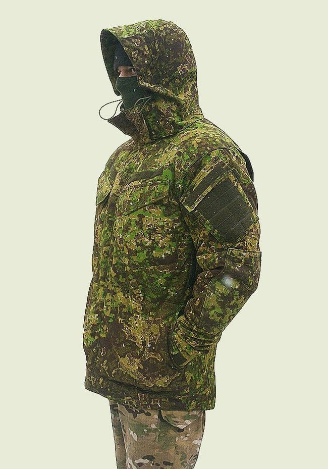 Developed for a Western European client the SPECOPS.PL KBS-1 Jacket is made from NYCO Pencott GREENZONE camo and incorporates a detachable hood, pit zips and Cordura reinforced elbows.