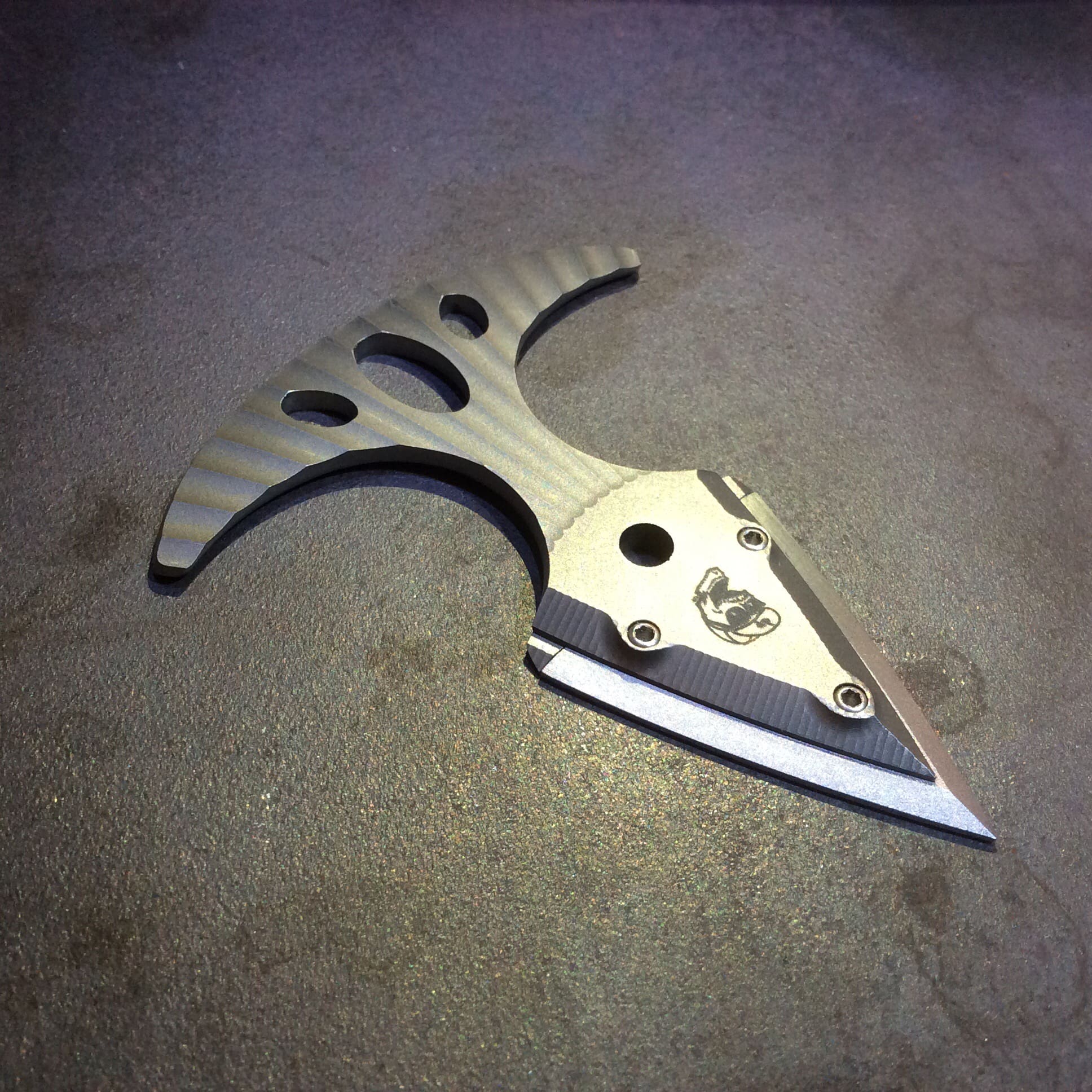 The Neck is obviously a neck knife but it’s still in prototype mode. This push dagger design incorporates a handle crafted from Titanium alloy and an ELMAX blade with only one side sharpened. Coming early fall 2015.