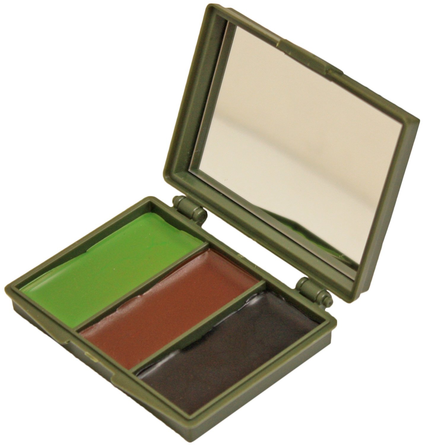 3. We got issued something similar looked like this http://ecx.images-amazon.com/images/I/71dt7kewkVL._SL1500_.jpg although I recall it having white in it also. I hope this stuff spreads easier then the stuff we got issued. It reminded me of the old cam paint sticks that you mashed in your face and had to soften it with high DEET bug spray. It was also a pain to remove. Wet Ones didn’t help much.