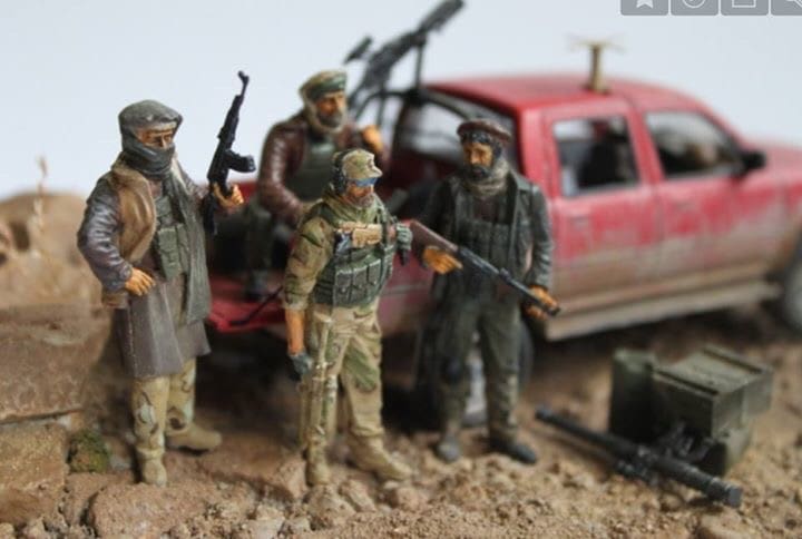 Some of you build models as a hobby. If that’s you abd you’re looking for an interesting kit, check out Master Box, Ltd’s “Somewhere in the Middle East. Present day”, a 1/35 ensemble of figures.