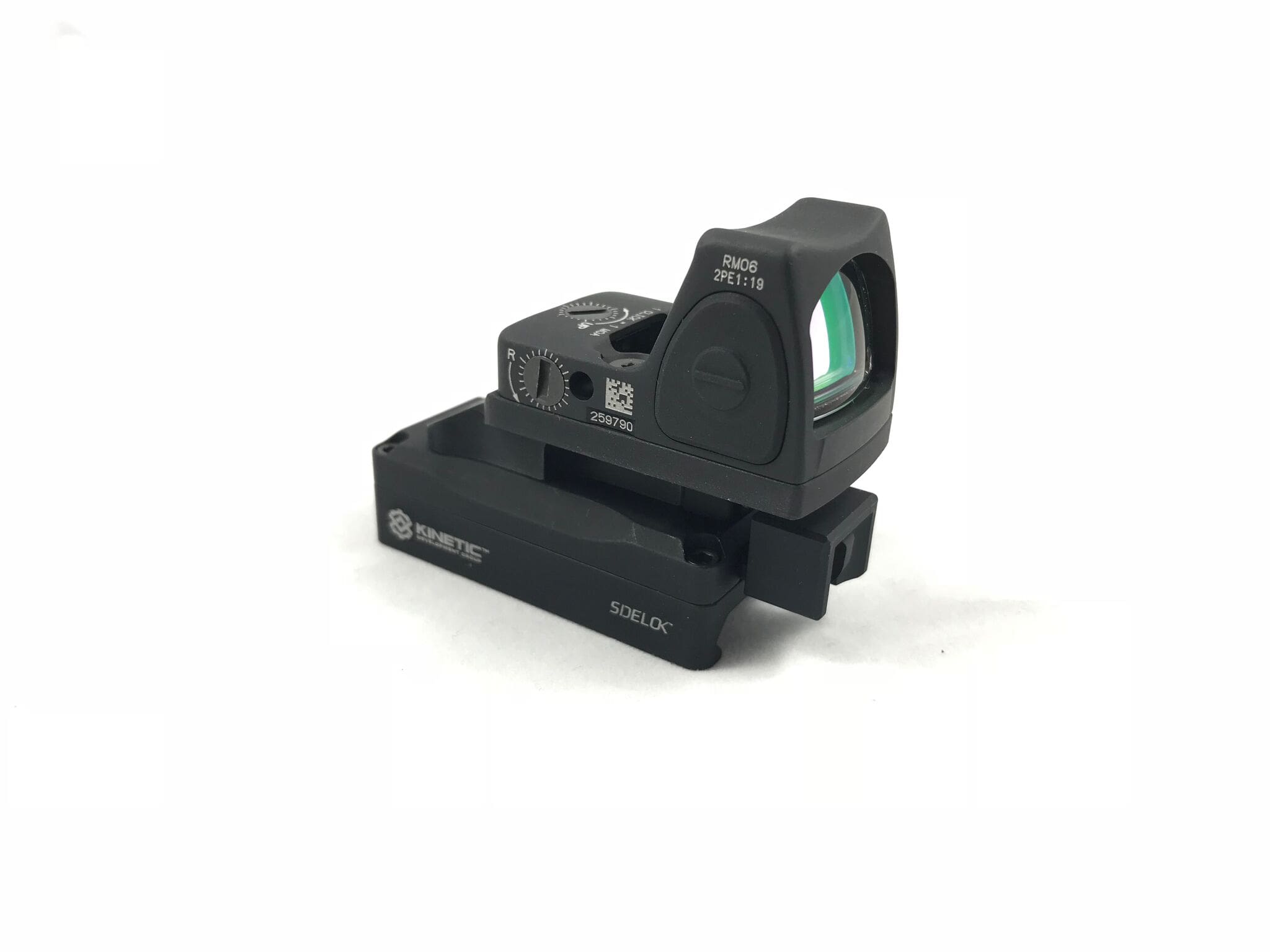 The KDG RMR Sidelok mount allows for the popular Trijicon RMR optic, and other brands that share the same mounting base to benefit from KDG Sidelok Technology! The lightweight, 3.4 oz mount pairs with all models of RMR to carry an overall weight of 4.4 oz assembled. Made from high strength 6061 aluminum, the Sidelok mount allows for instant attachment or detachment of the optic to the firearm. This is facilitated with no tools or adjustments, can be accomplished with one hand even while wearing gloves, and with 100% repeatable return to zero! The RMR Sidelok is perfect for lightweight firearms and those that swap optics out for different shooting environments.