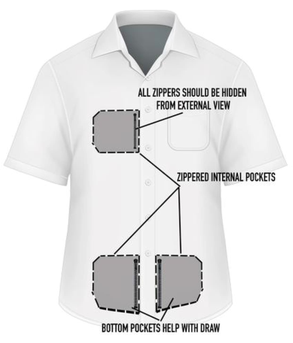 The Jedburgh Cover Shirt is the ideal shirt for anyone carrying a concealed firearm during plain clothes operations or for simple every day carry. Designed to have a non-tactical appearance, this athletic form-fitting shirt easily blends in with your environment, without presenting yourself as armed. Built with lightweight, air-wicking stretch fabric, you can easily maneuver, draw, and present your weapon when needed. Special pearl button snaps and reinforced lining allow you to quickly open and clear your shirt when drawing, while minimizing your weapon profile when concealed. Three hidden pockets lined within inside of the shirt let you carry sensitive items, such as CAC cards, ID’s and money separately from your wallet.