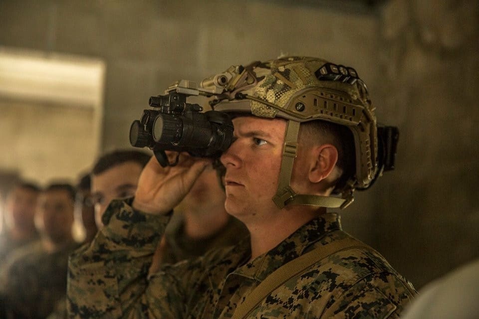 During the exercise, Marines with Kilo Company, 3rd Battalion, 4th Marine Regiment, 1st Marine Division evaluated a wide variety of technologies, particularly visual augmentation equipment. But in every case, they were wearing Ops-Core helmets to protect the Marines’ heads and serve as a head Orne platform.