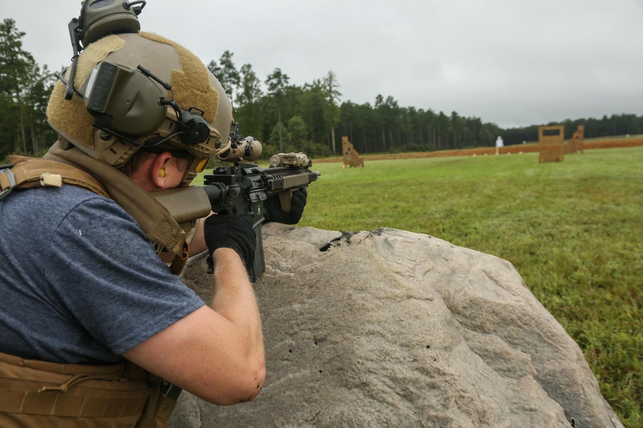 Asymmetric Warfare Group members conduct multiple pistol and rifle drills form different firing positions to transitioning from rifle to pistol as part of the Operational Advisor Training Course (OATC) at Fort A.P. Hill, Va., Sept. 11-13, 2018. The drills they were conducting were designed to: Improve accuracy and efficiency under stressful situations while transitioning from a rifle to a pistol.
