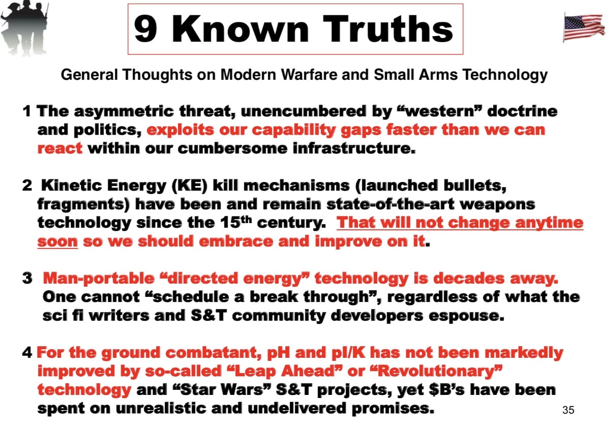 The “9 Known Truths” is based on Jim Schatz’ experience in the Small Arms industry. Consider them now that we’ve seen DoD’s path forward.