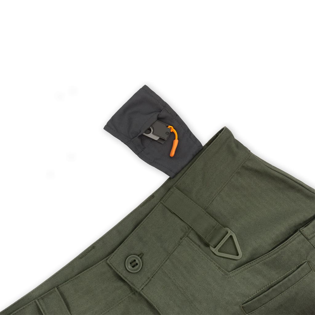 “When we set out to create this non-cargo pocket type field pant we immediately thought of the classic WWII era USMC Dungaree. This was a design that was totally dialed towards utility, durability, and field use. It was an obvious and great place to start. We built the fit around a modern regular straight leg silhouette that supersedes flighty trends and ridiculous cuts, which can be either too baggy or too damn skinny. While we began this style pant using MILSPEC 5050 NYCO, we always wanted to return to the original ‘HBT’ material as originally used. We finally found a suitable mill to source this 100% cotton herringbone twill and were able to use that in this design. ‘HBT’ is a distinct and durable fabric that can actually trace its roots to the days of the Roman Empire. In more ‘modern’ times, cotton HBT is best known in classic American work-wear and the vintage US Military dungarees and fatigues. Our pant style even takes its namesake and is in honor of the Marine Raiders from WWII. Everything about this pant is taken from the ‘best of’ in classic work and military wear but with our signature design and functional details for today’s modern user. Whether mending fences on your property, an autumn hike, tinkering on your rig in the workshop, to a night out exploring food trucks, the Raider Field Pant 100HBT has got you covered this year and into the next.”