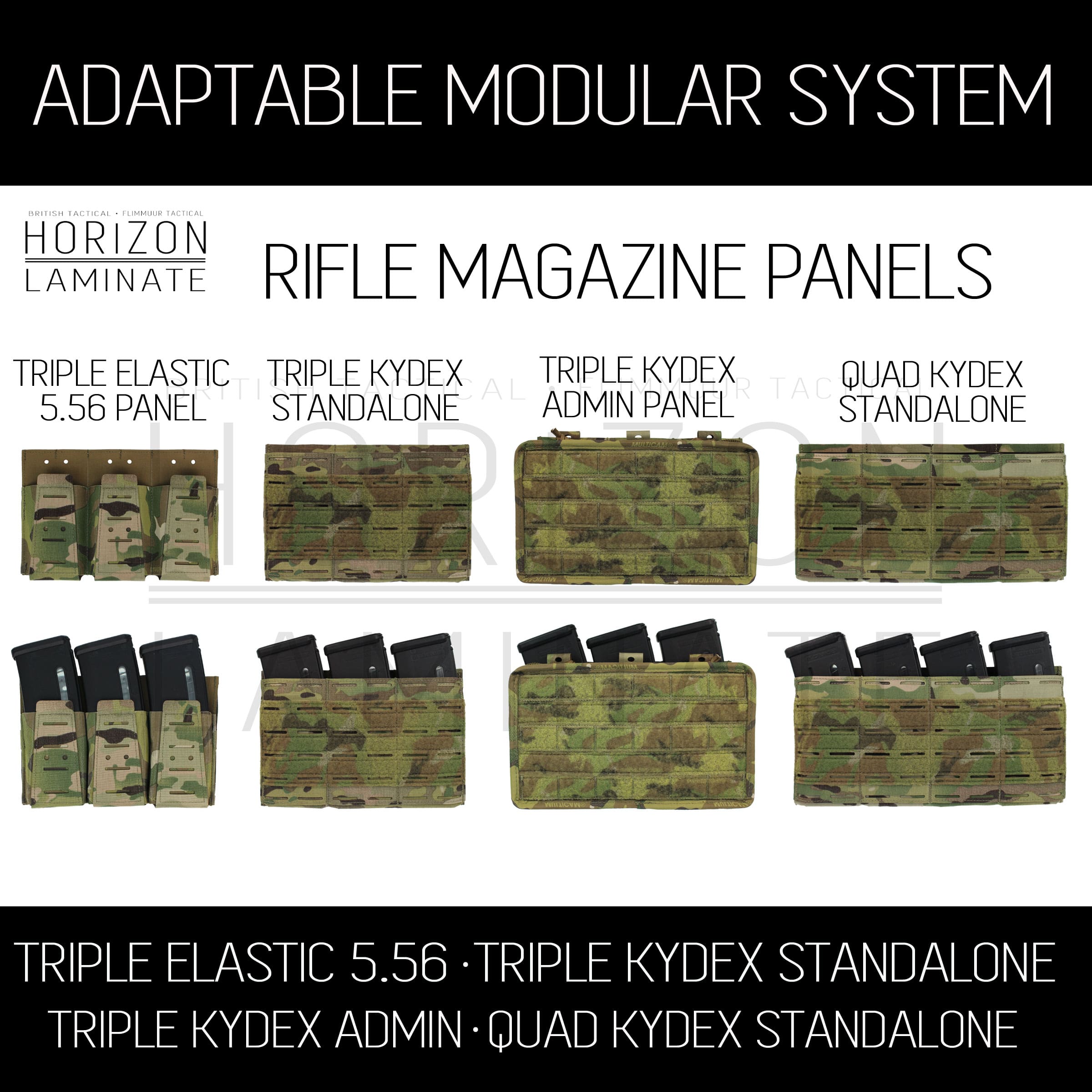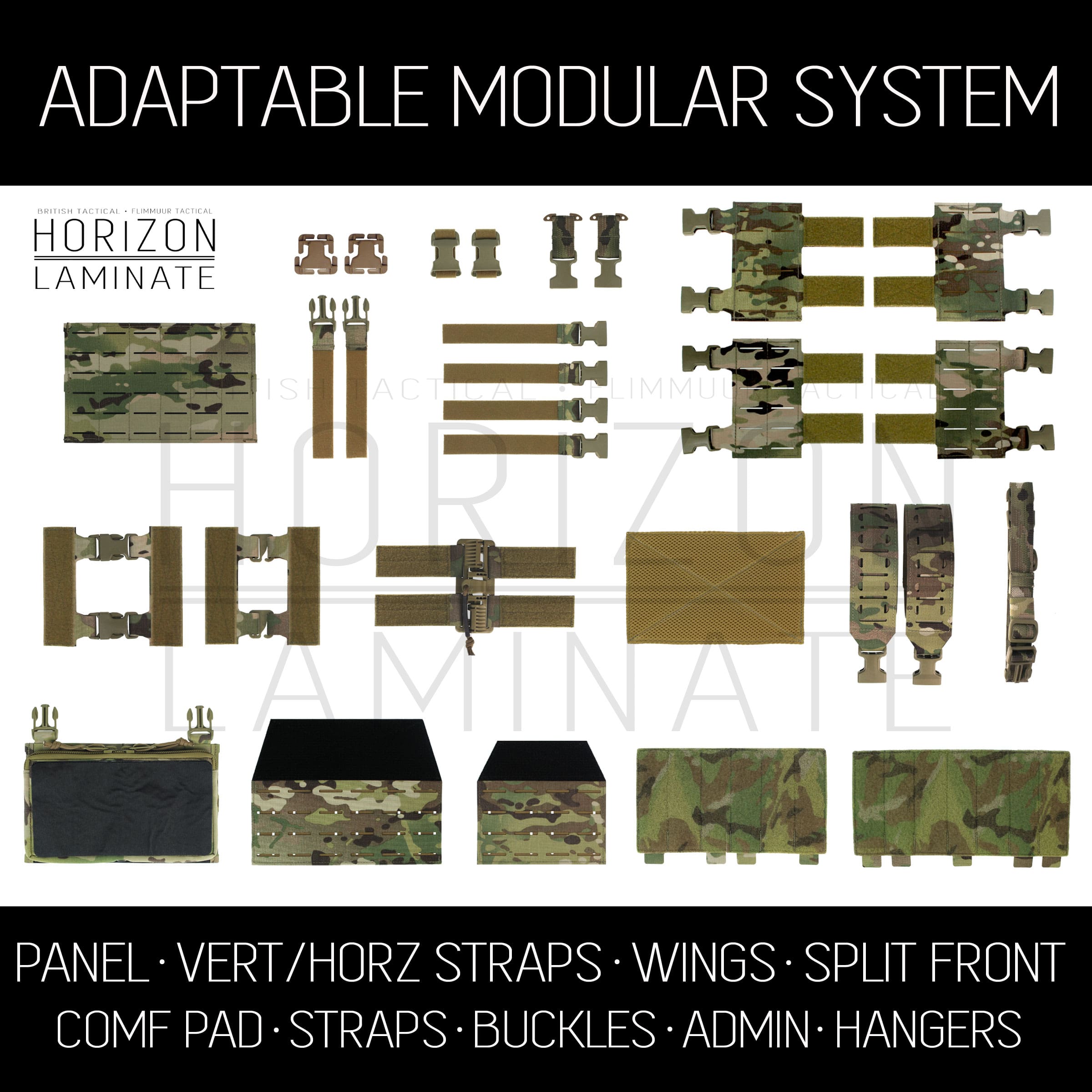 HORIZON LAMINATE is a collaboration between British Tactical and Flimmuur Tactical, the goal is to bring you up to date innovative products based on Laminate fabrics along with select quality materials.