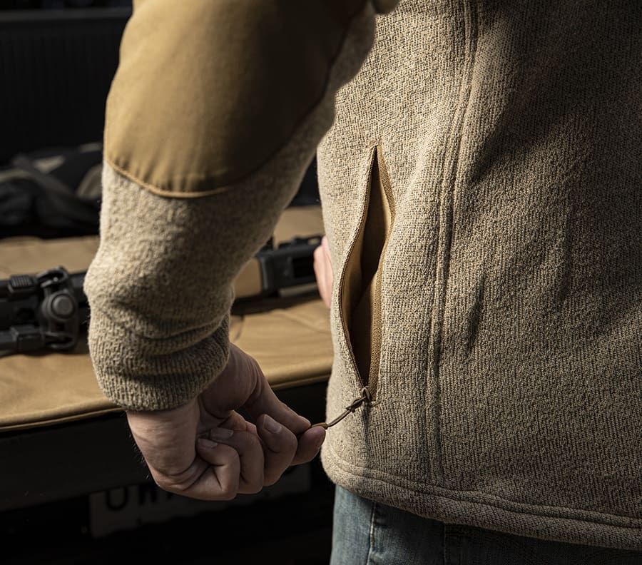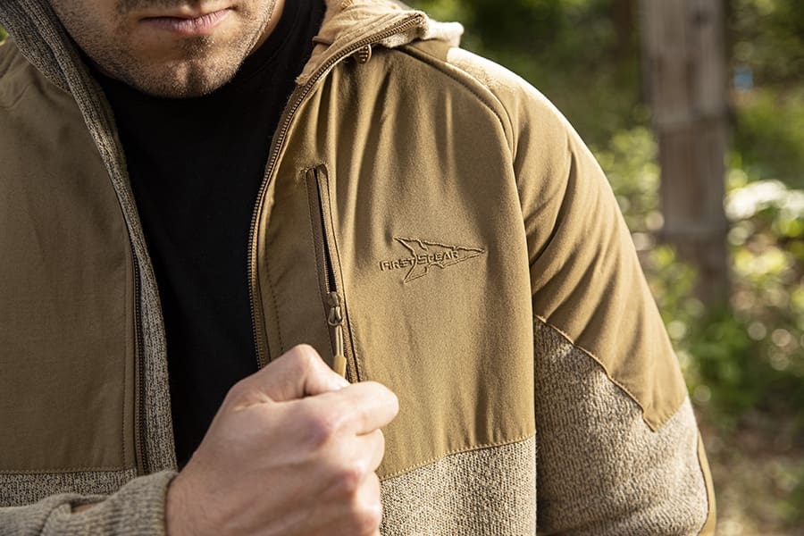 Today we are getting the first look at an all new garment from the FirstSpear American Merino Wool Line. Meet the Technical Woobie. Constructed with premium USA materials including FS ACM 600 Merino for warmth and FS signature apparel nylon accents which add abrasion and wind resistance. Features a modest tail, high collar with adjustable hood, thumb holes, as well as generous hand warmer pockets lined with FS ACM 100 Merino. The Full length zipper and pockets utilize premium zipper hardware and pulls.