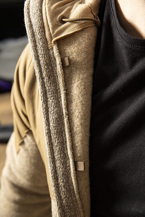A very cool feature FS incorporated are button holes inside the hand warmer pockets along with cord loops along your internal zipper seams which allow the user to route ear buds or communication cables for discreet cable management.