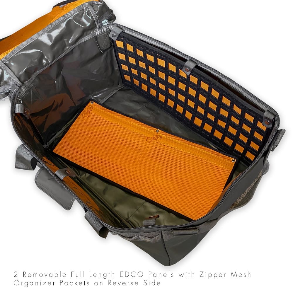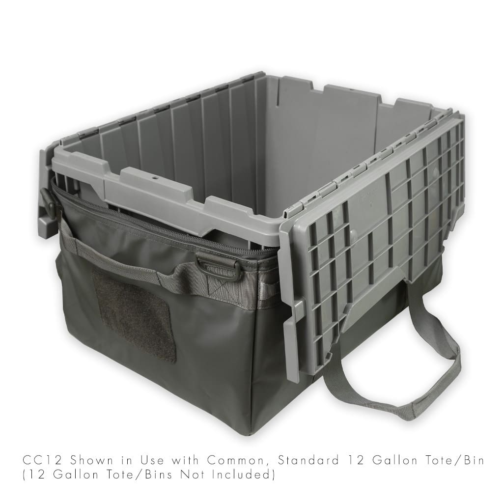 “We saw a gap between the typical soft duffel bag and hard case storage options being used by today’s overlander. We also wanted to have a uniform storage system that could easily go from 4×4 to home storage areas. The standard, industrial, rigid wall 12 gal tote/bin is just about available everywhere and many of us use these at home, work and for camping. We created the CC12 around this 12 gal bin so these bins could be more user friendly when carrying to and from the vehicle. The multiple carry handles and shoulder strap allows for a much easier time when carrying and transporting these bins when nested inside. Each CC12 duffel can store your select camping gear and supply load outs so they are easy to grab and go for the spontaneous outdoor adventure or stored emergency supplies and food for sheltering in place or egress to a safe zone. These duffels are sized so one person or two can easily handle them when it’s a heavy load. The loop area on the front of the CC12 allows users to use our optional Morale Patch ID Tags to identify the contents inside. If ever needed, this duffel used in conjunction with the 12 gal bin can be un-nested and instantly double storage capacity. ”