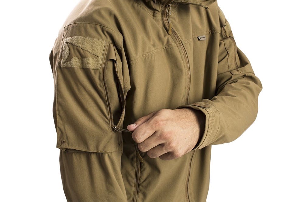 The Wind Cheater features a long tail great for colder days with just the right height on the front for easy access to belt mounted accessories. Oversized hood works well with hats or helmets with a wide range of bungee adjustment for user defined fit. Two large bicep pockets, pit zips and torso pockets allow for exceptional ventilation when required.