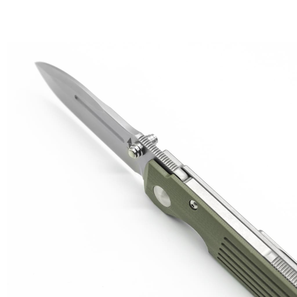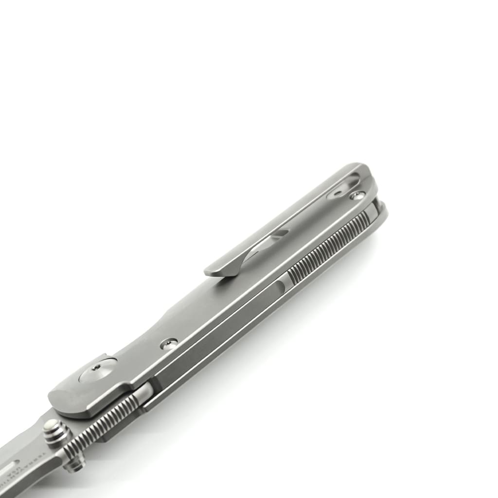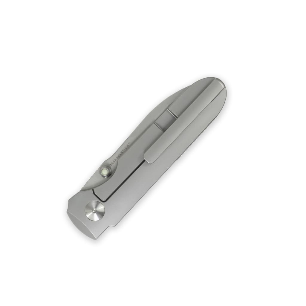 “This is the compact version of our most popular model the Invictus-AT. With a 3” Terravantium™ blade and an OAL of 7” open, this framelock features all the properties and characteristics of its bigger brother, but in a more compact size. Perfect for EDC around town and in the backcountry. As with our other AT designated folder models, this folder is built with 100% non-ferrous materials, non-magnetic, and rust proof. A pivot with ceramic bearings creates a smooth action and the dive watch grade glow-in-the-dark cabochons inlaid in the dual thumbstuds round out the finer details.”
