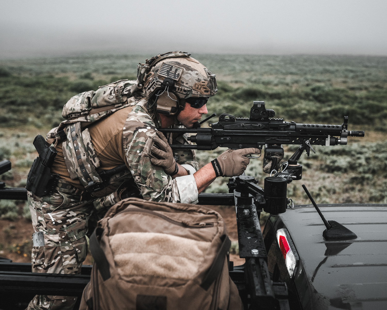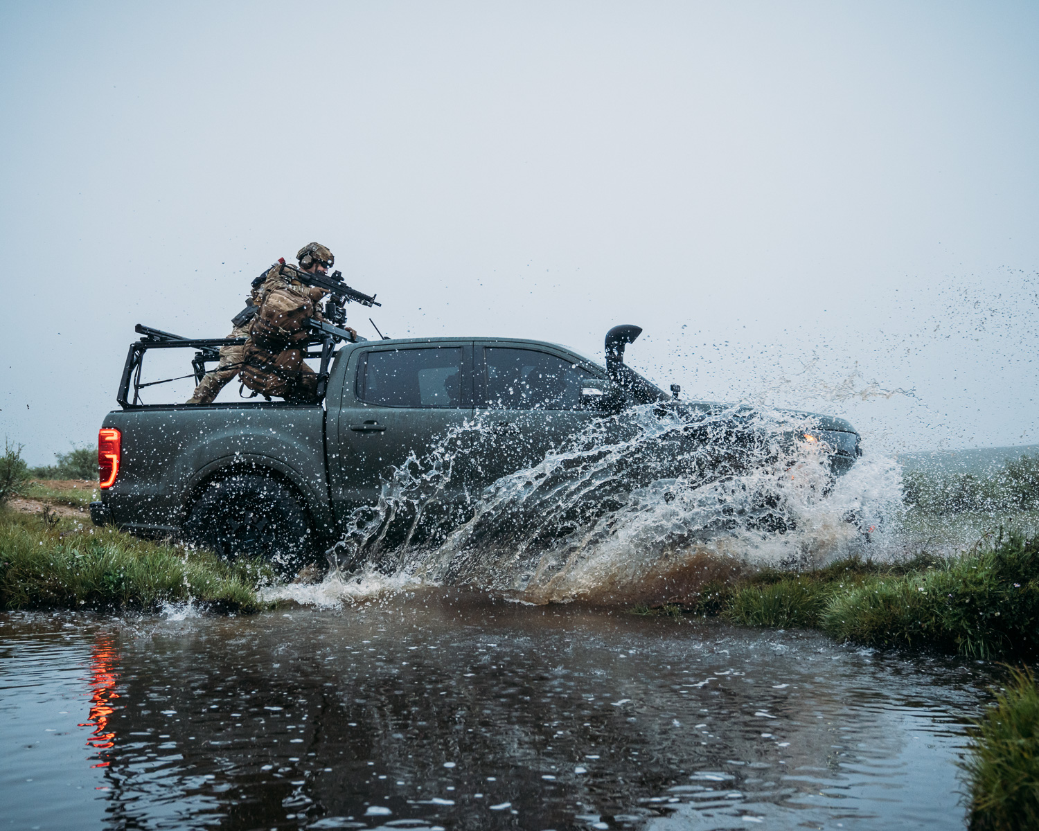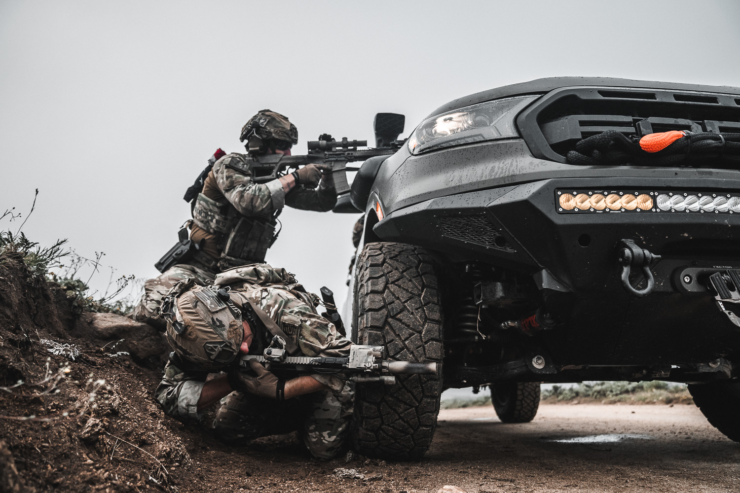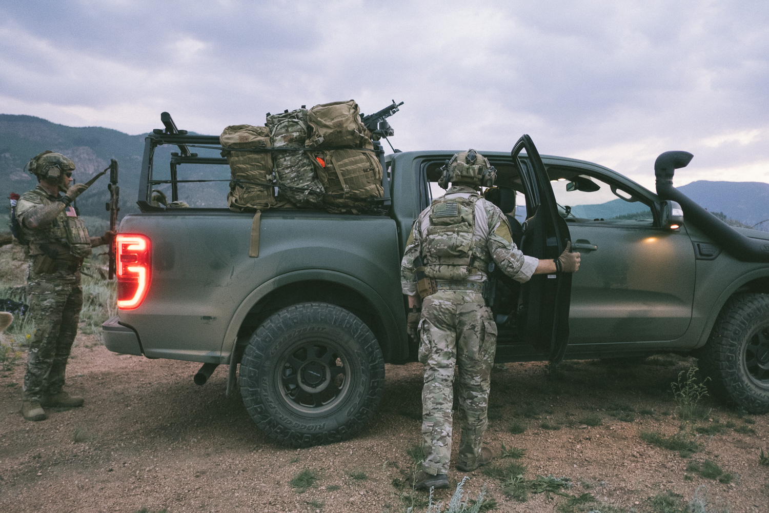 Right up front you’ll note that it’s a Ford Ranger which might seem like an odd choice for a gun truck. CMG acknowledges this and explains that it’s nigh impossible to get an actual Toyota Hi-Lux in the US. Instead, they went for a Ford Ranger which is becoming more popular with foreign SOF.