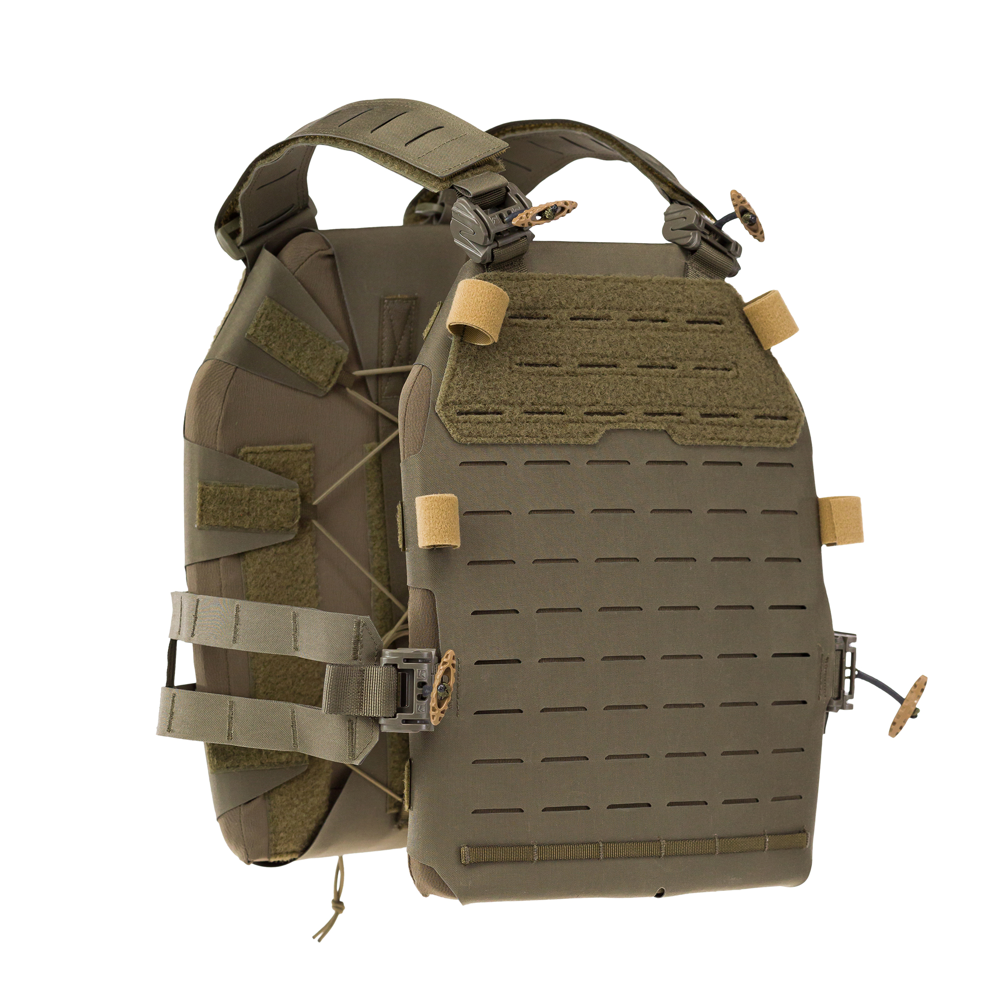 “Common to the plate carrier and the accessory items—beyond being made with Multiaxial Laminate MX—is their extreme functionality and modularity,” Kolbeck said. “Consider, for instance, the new MX560 Belt Grid. It’s a laser-cut sleeve-grid. But as soon as it’s wrapped around our Tactical Harness [1000551 Edelrid Gürtel], the harness transforms into a slim, super-lightweight war belt. Extra slots stably attach it to common holster systems including Blackhawk, Safariland, and G-Code, as well as to other items.