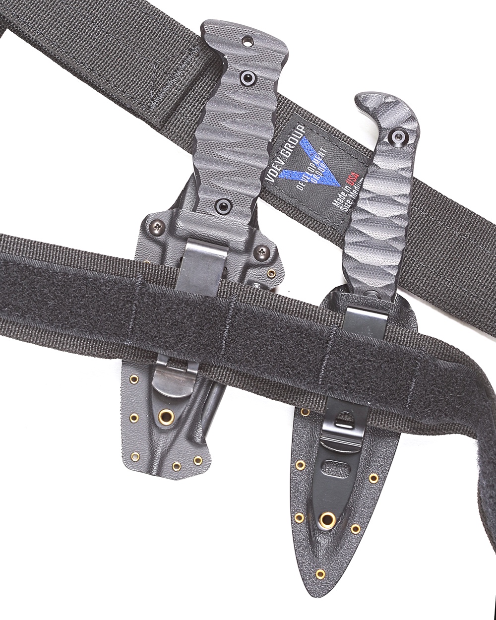 There is a PALS-style webbing section that allows for a multitude of various blade sheath clips, or anything else you would like to attach to this section for further retention and concealment.