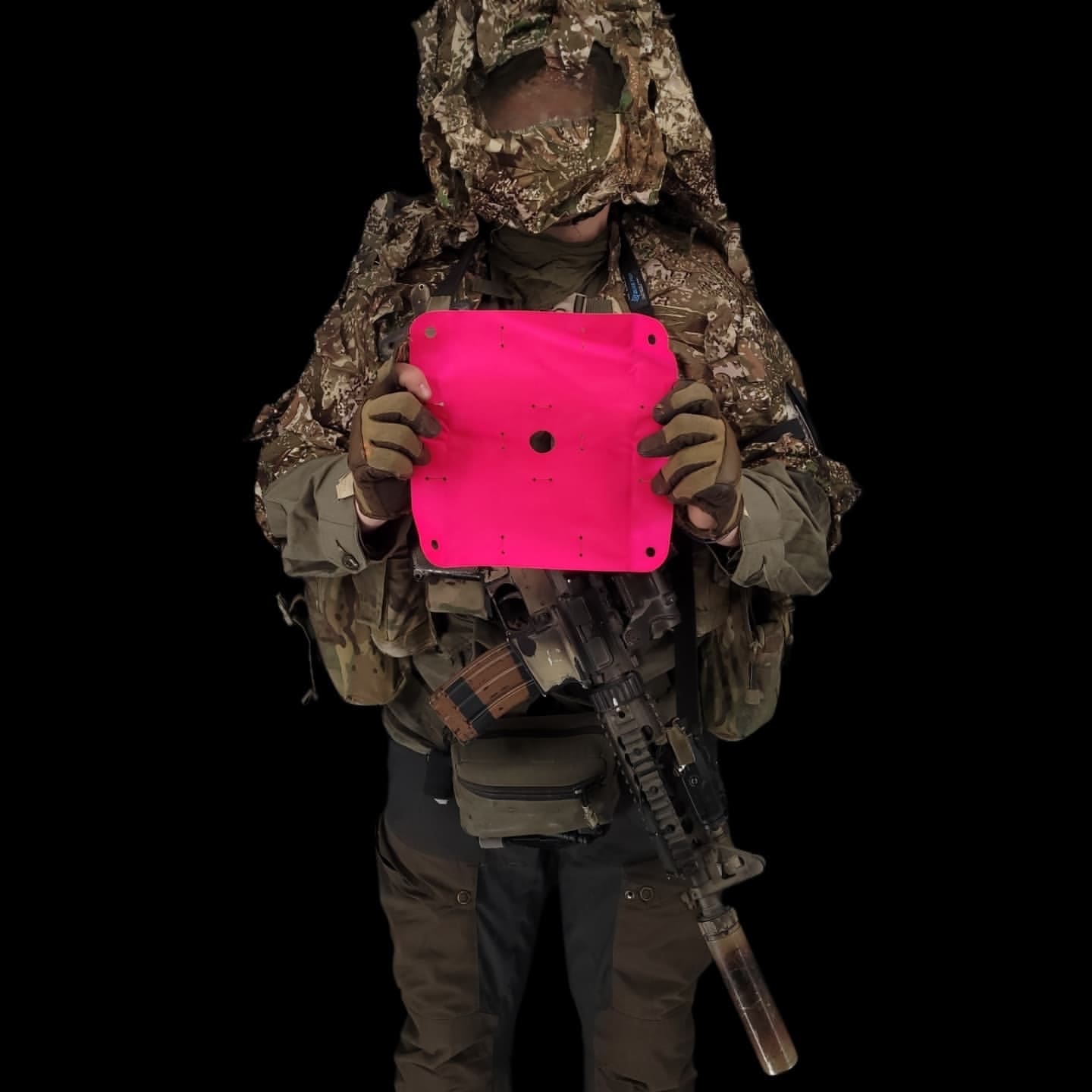 ISK 17 Signal Panel: Featuring a special cut for easy integration with chem lights, the blaze orange and pink panel enhances visibility and can be easily fastened to a wide range of items, making it a versatile signaling solution.