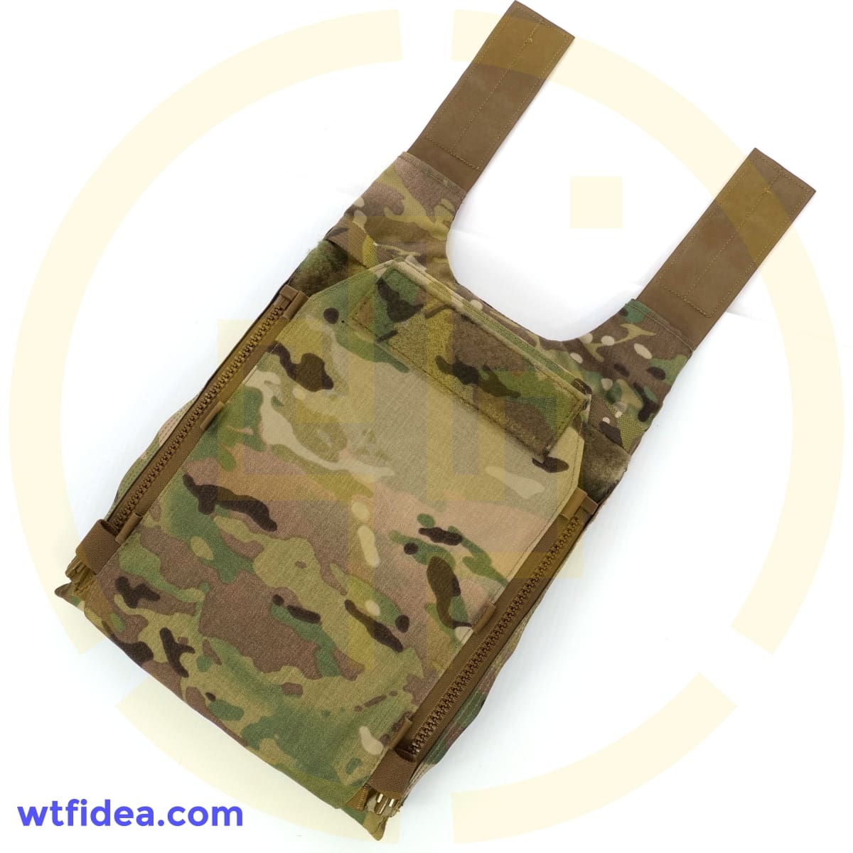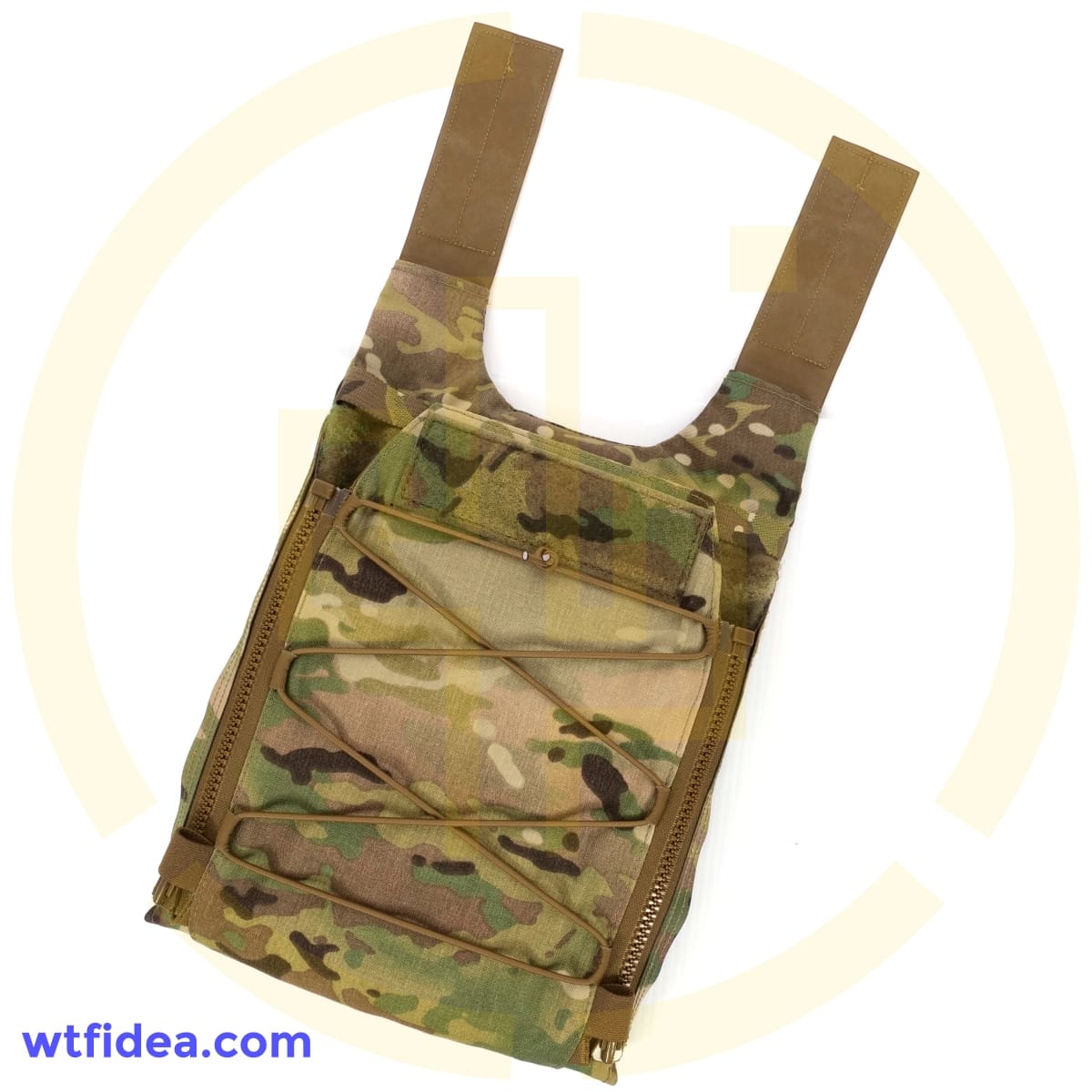 To discourage accidental separation from the carrier, the back panel’s zipper pull tabs tuck securely and silently into milspec elastic loops at the back panel’s base.  Laser cut VELCRO® Brand ONE-WRAP® minimizes weight and offers a secure connection to the Overt’s loop field.