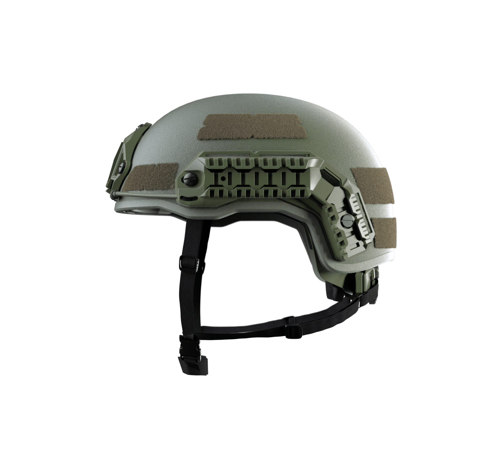 The Omega Core pairs a sophisticated ballistic construction with an open rail architecture and modular interfaces, e.g. for NVG mounts, visors, communications devices and hearing protection and more. The interior features multi-chamber pads and adaptive anchoring points to minimise micro-movements under dynamic loads, thereby improving stability, comfort, and fit. The individually adjustable suspension net provides continuous ventilation to reduce perspiration and heat build-up. The shell concept is engineered for low backface deformation and optimised fragment deflection. Thanks to its modular platform architecture, the helmet can be adapted to different mission profiles, ranging from highly mobile operations to scenarios involving variable threat environments.