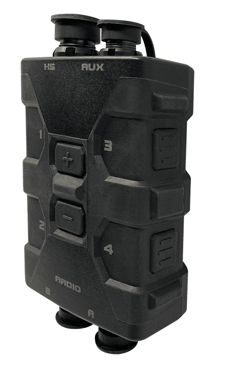What are the SHIELD Earpieces? – The SHIELD earpieces have dynamic or active hearing protection that features level-dependent electronic sound reduction – an excellent blend of capabilities for the operator who regularly finds his/herself in fluctuating levels of loud environmental noise. The earpieces were designed to allow use of both replaceable ear tips and custom ear shells (our recommendation) to the wearer. The ear shells can be snapped on and off, allowing the system to be handed off to another operator who can then snap his/her custom ear shells onto the system. The SHIELD earpiece circuitry provides hearing protection by continuously measuring the operator’s environmental noise levels and adapting each earpiece’s attenuation (aka in-the-ear noise reduction) accordingly. In essence, the SHIELD earpieces do not excessively reduce the noise in the wearer’s environment – providing the wearer with consistent situational and directional awareness. Dangerous sound levels are instantaneously reduced to safe in-ear levels. This rapid-fire response ensures that even short ‘impulse noises’ such as gunfire, are dampened the moment they occur. As environmental sounds return to a safe range, the attenuation is automatically reduced, providing the wearer full ambient awareness, localized warning signals and the ability to hold natural conversations with others.